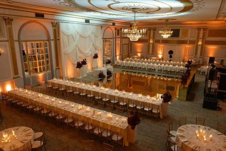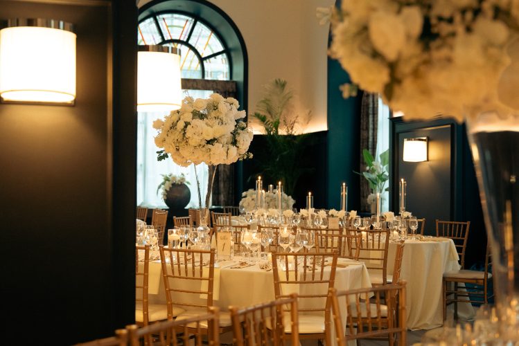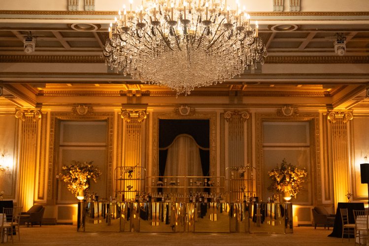 With its 20-foot gilded ceilings, grand mirrored French doors, and sweeping crystal chandeliers, Salon Windsor offers pure romance and sophistication.